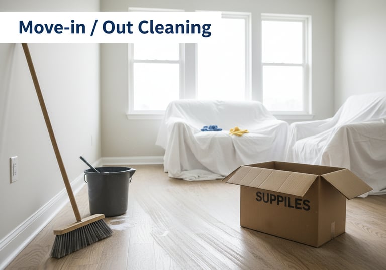 Empty apartments or homes, kitchens, bathrooms, floors, and trash removal. We ensure the space is ready for new occupants.